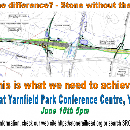 The Stone Railhead Crisis Group’s technical team appeared for the third time in front of the HS2 Select Committee on Tuesday 7th May. Representing Stone Town Council on this occasion, Trevor Parkin and Gordon Wilkinson gave evidence on road safety issues, as well as HS2’s latest indicative programme for construction of the Railhead on Yarnfield Lane. Gordon Wilkinson tried to explain the Town Council’s serious safety concerns of HS2’s proposals for the A34/A51 Brooms Road junction, especially for cyclists and pedestrians, which were contrary to national guidance, but faced frequent interruptions led by James Duddridge MP, Chairman of the Select Committee, who seemed unperturbed that HS2 had only belatedly carried out the required Stage 1 safety audit, and had not even shared this with the highway authority. Mr Wilkinson ran into similar problems over similar design concerns at HS2’s proposed signalised junction between the A34 and Yarnfield Lane and lack of progress on meeting the Select Committee’s own demands over the width of the proposed new Yarnfield Lane bridge over the M6.